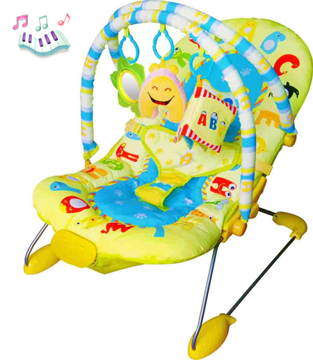 Шезлонг со съёмными игрушками, с муз. панелью (7 меняющихся мелодий), работает в совмесном режиме музыка+вибрация. Работает от 2 батареек АА (в комплект не входят). В подарочной упаковке. С трёхточечными ремнями безопасности, для детей до 9кг. Размеры в разложенном виде 60х98х50см; размер упаковки 53х10х47см