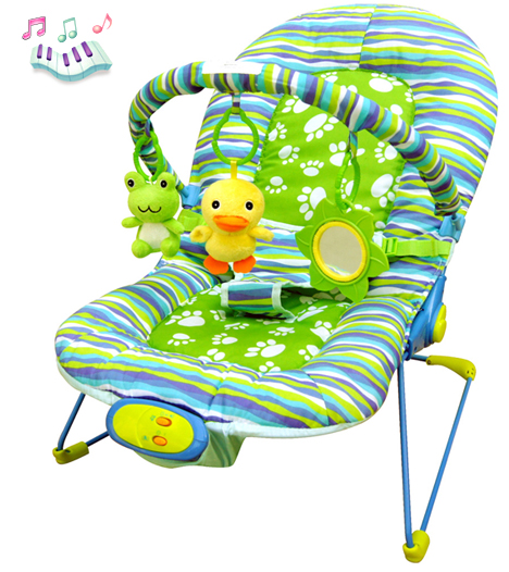 Шезлонг с муз. панелью (7 меняющихся мелодий) с регулировкой громкости, вибрацией. Работает от батареек АА (в комплект не входят). Размеры в разложенном виде 66х50х51см. Производство - Китай.