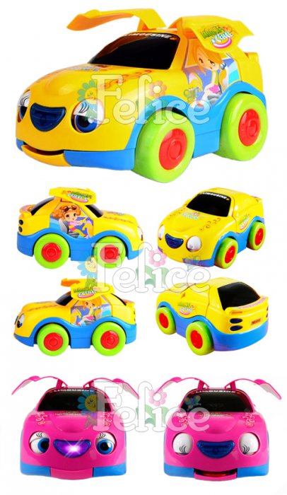 Машина сама ездит, преодолевая любые препятствия. Двигает глазами, открывает рот, сами открываются и закрываются двери.