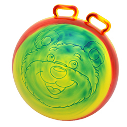 Мяч для прыгания с удобными мягкими ручками-ушками для держания во время прыжков. Ребенок садится верхом на мяч, держится руками за ручки-рожки и прыгает, отталкиваясь ногами от пола. Надувной мяч с рожками предназначен для активных игр и занятий лечебной физкультурой, помогает формировать правильную осанку детей, укрепить мышцы спины, развить вестибулярный аппарат. Материал: ПВХ – пластизоль. Диаметр мяча: 45 см. Максимальная нагрузка - 45 кг.